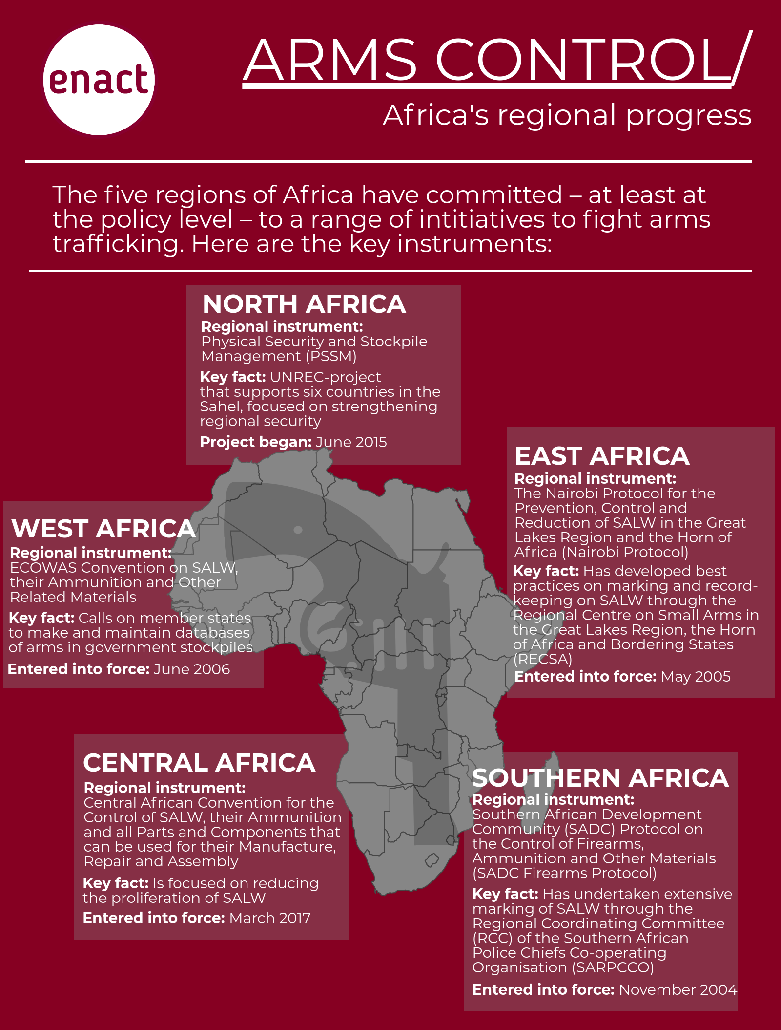 Infographic: the five regions of Africa have committed to a range of initiatives to fight arms trafficking.